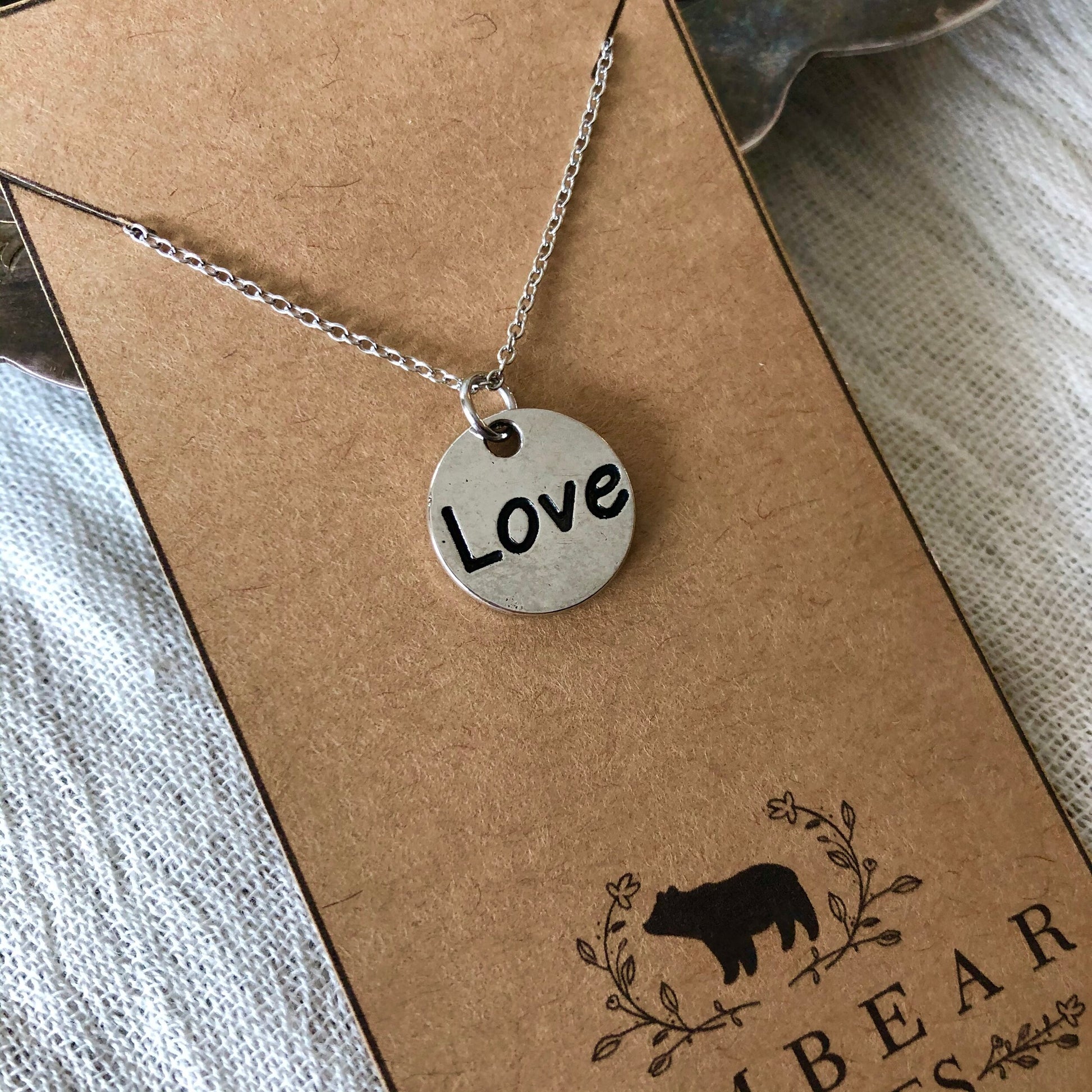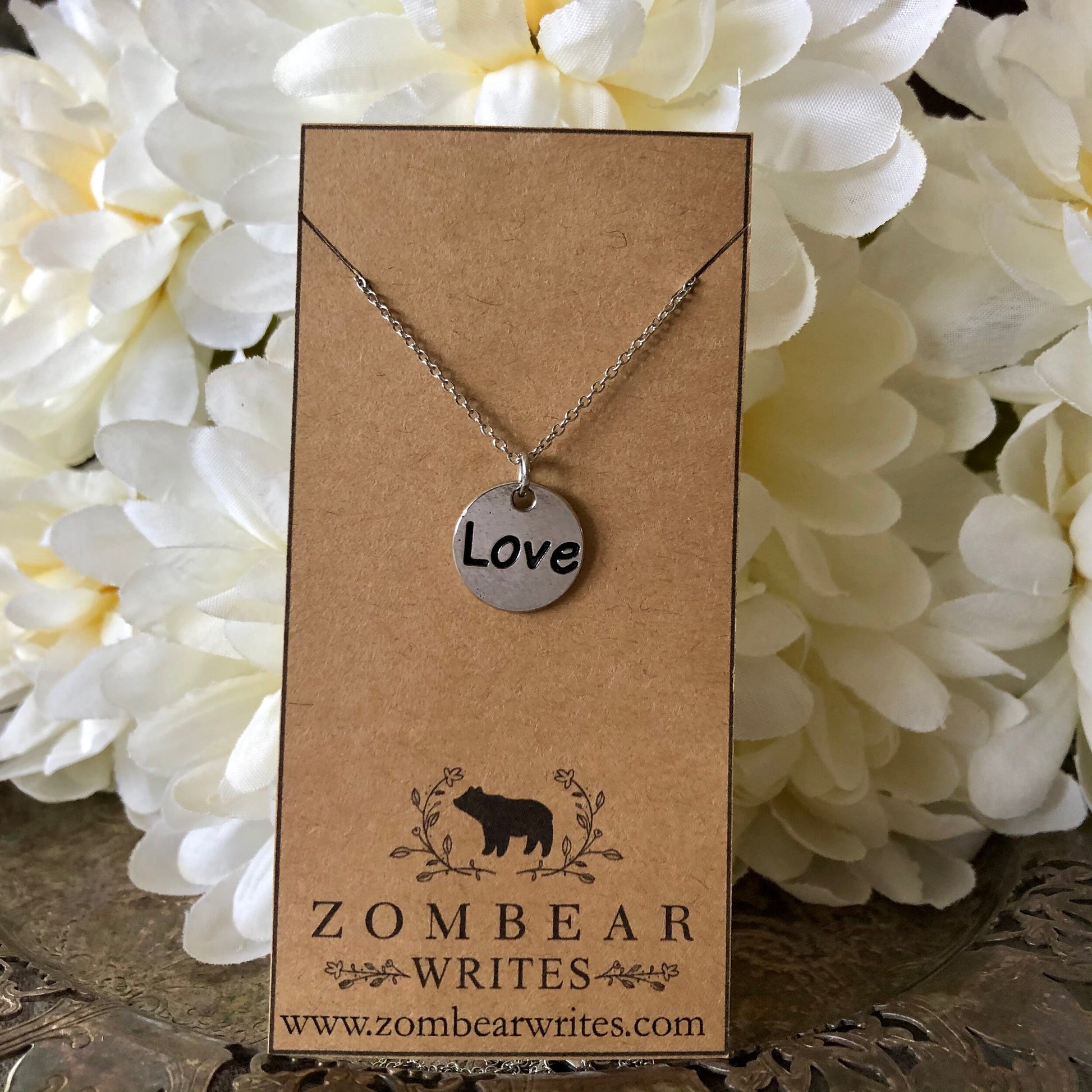 This handcrafted necklace from Zombear Writes features a reversible pendant so you can switch up your style depending on your outfit or even your mood! On one side is reads “Love” and on the other there is a subtle heart. Super cute!