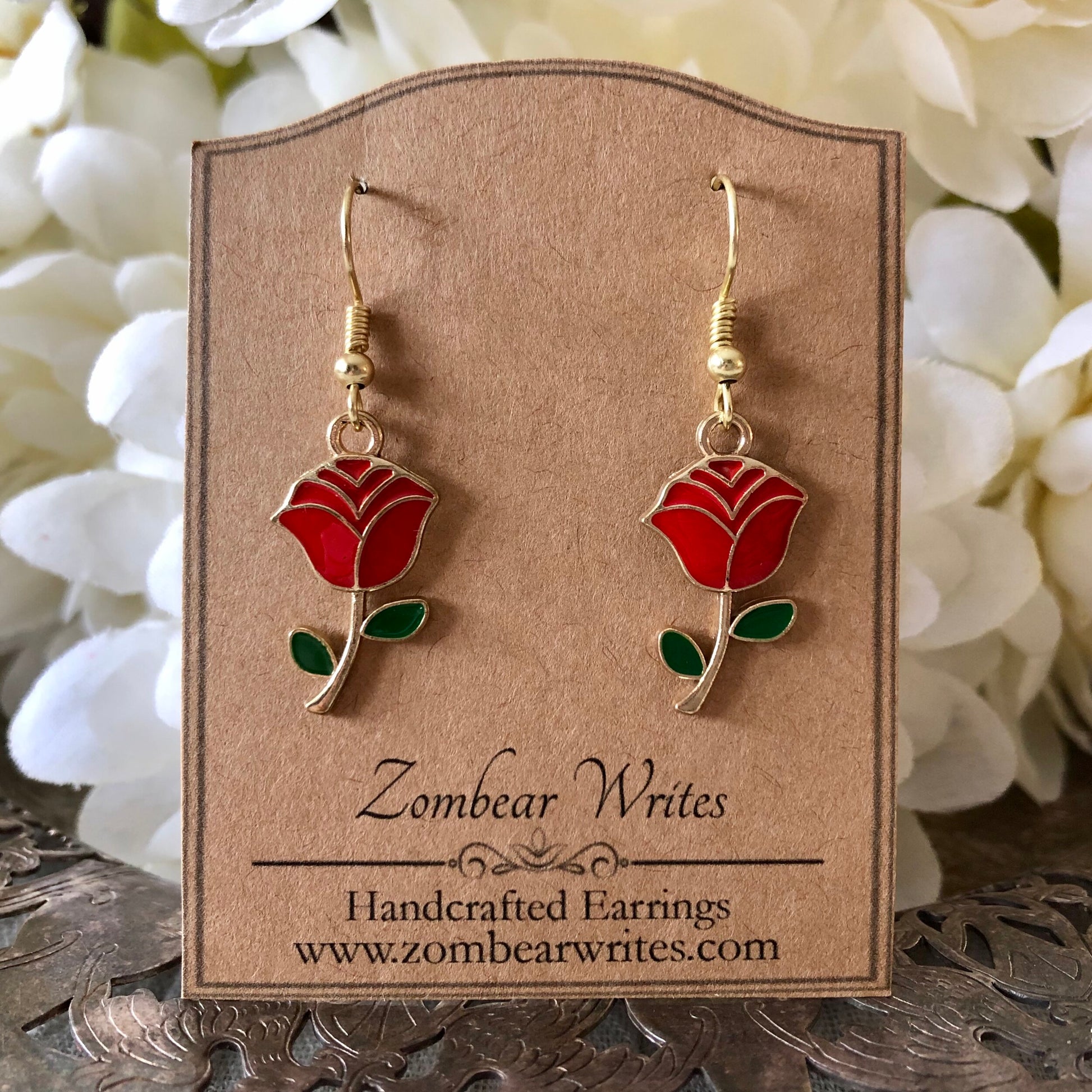 These handcrafted earrings from Zombear Writes are wonderfully romantic and perfectly lightweight! They feature a red rose design and are a fun everyday accessory! Their bright colour is eye catching and beautiful - a must-have for all jewelry collections!