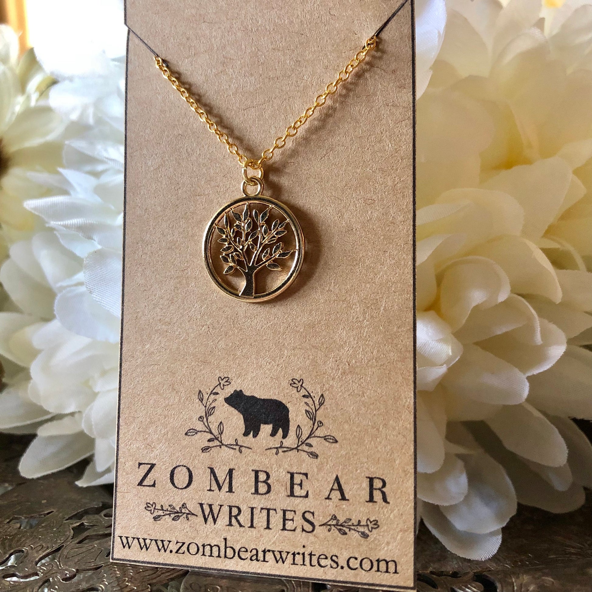 This handcrafted necklace from Zombear Writes is perfect for everyday wear. It can be worn with just about anything! Crafted with care in Ontario, Canada. Lightweight and versatile. The tree of life is said to be a symbol of fresh starts, good health, positive energy, and a bright future.