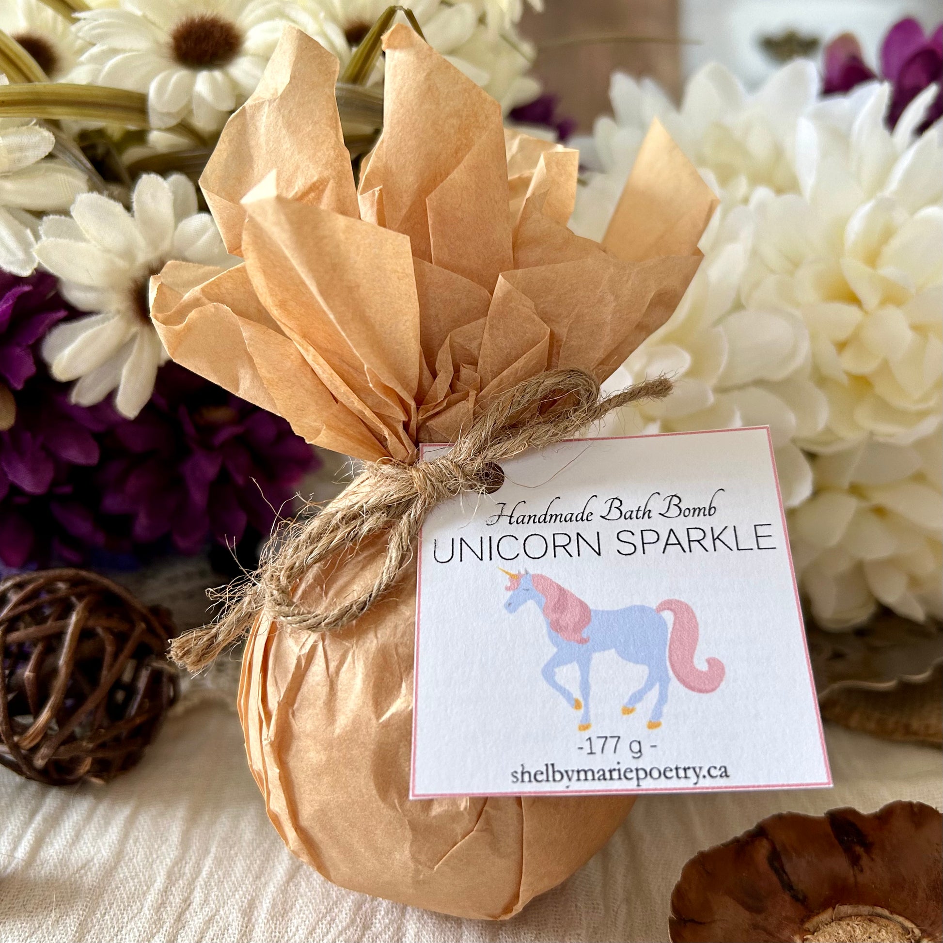 Handmade jumbo bath bombs from Shelby Marie Poetry make wonderful gifts or a perfect treat for yourself! Always lovingly crafted with care in small batches and individually wrapped in tissue paper as an eco-friendly alternative to plastic.
