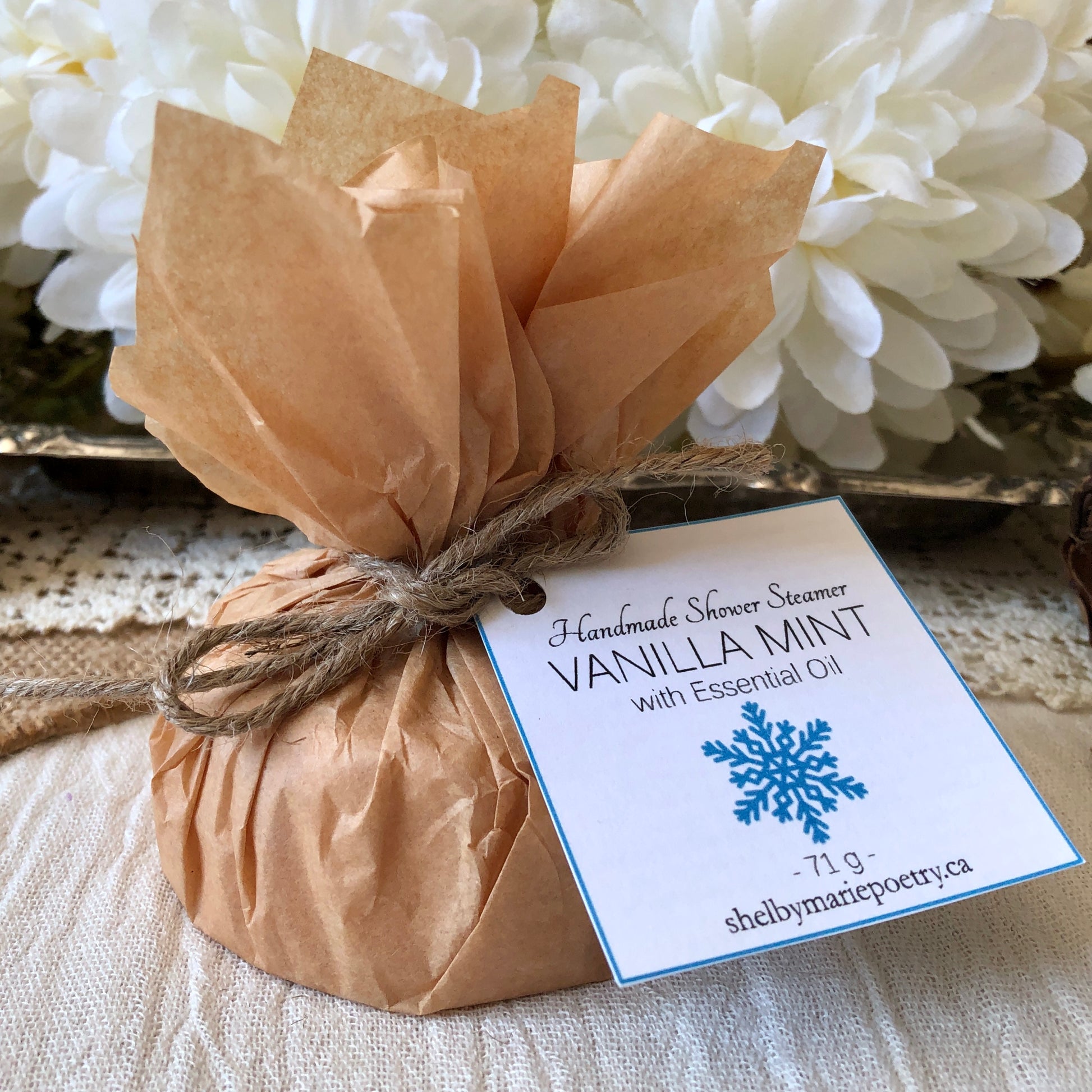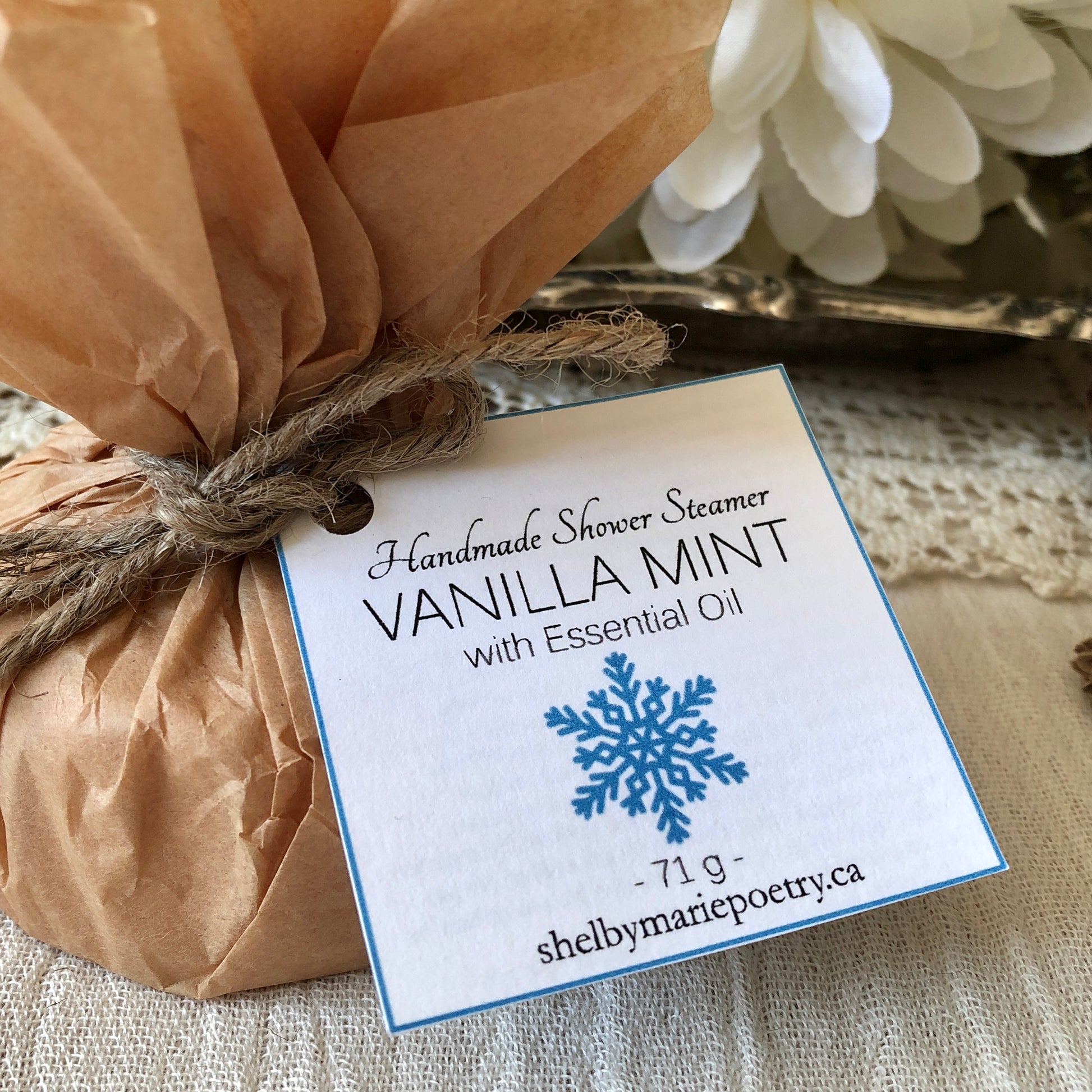Note: Vanilla Mint Shower Steamers contain pure peppermint essential oil and are not suitable for children or if pregnant.